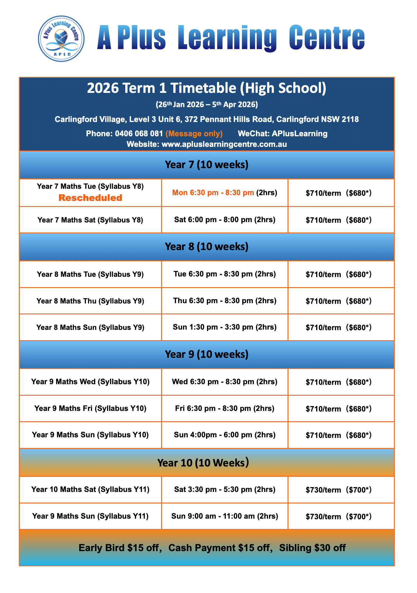 We offer maths from Years 7-8 for new high school students, allowing them to be more prepared with harder topics at school. We also offer maths to Year 6 students to help them ease their transition from primary to high school maths. This course gives students a taste of high school maths, leaving them hungry for more.